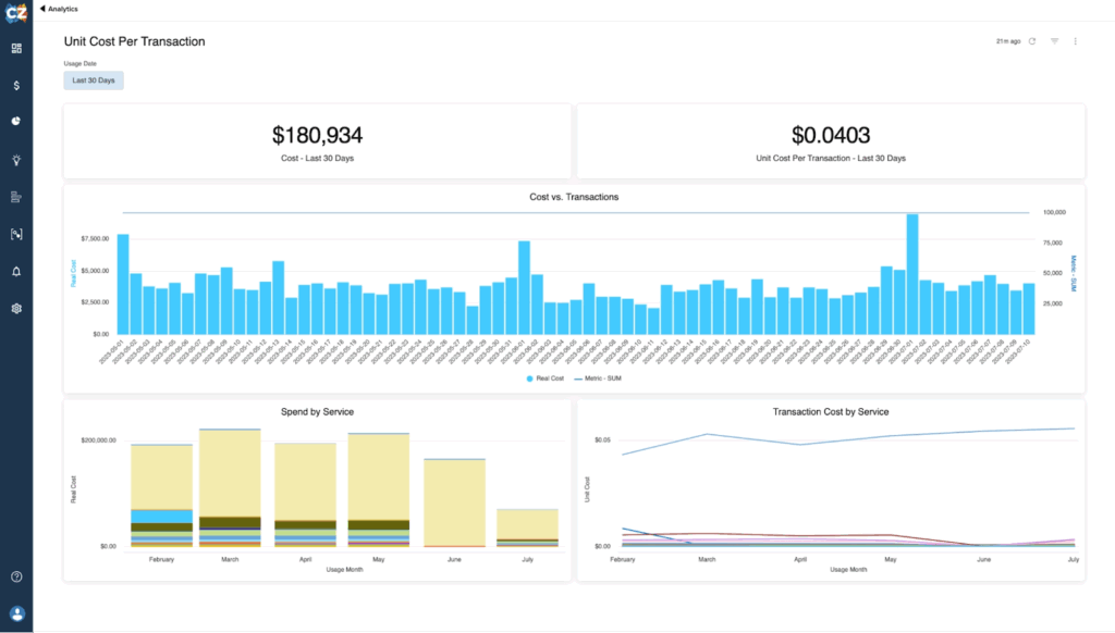 CloudZero is an AWS cost management platform that links cloud spend to business outcomes. It allocates AWS costs, even without proper tagging, and organizes this data by team, product, feature, or microservice. This visibility enables engineering and finance teams to collaborate on optimization efforts and maintain accountability for cloud usage.