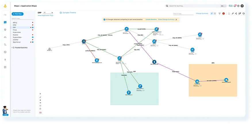 - Hybrid Application Dependency Mapping: See how applications interact across on-premises, cloud, and hybrid environments in real-time.