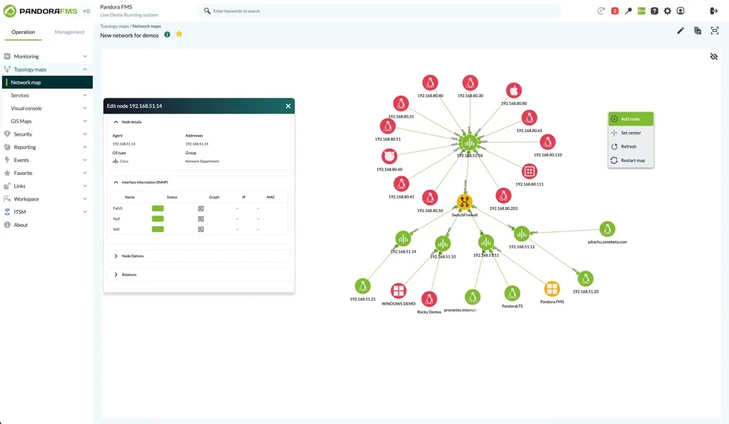 - Network monitoring: Automatically discovers devices and visualizes complete topologies with interactive maps.